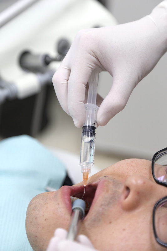 きれいになった神経管に薬を詰めます。
