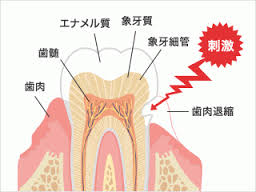 象牙質にはたくさんの小さな管が通っており、その中の神経に刺激が伝わることで、しみるような痛みが起こります。