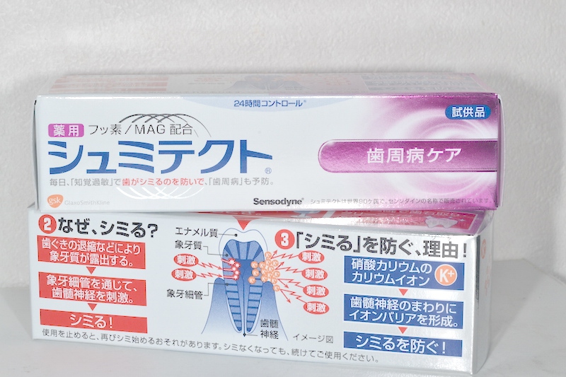 知覚過敏用歯磨剤に含まれる、硝酸カリウムやフッ素は刺激を遮断し、知覚過敏を和らげます。長期的に使用していただくことで効果が発揮されます。