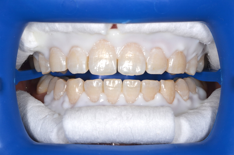 歯ぐきを保護してから歯に薬剤を塗布します。
